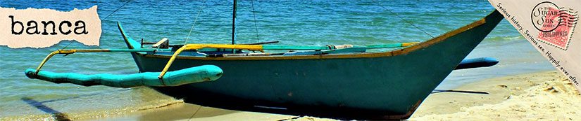 As you can probably guess from the context, banca or bangka means boat—specifically a double-outrigger canoe. If you have visited anywhere outside Manila, you have probably taken a bangka. When I first drafted Sugar Moon, Ben and Allie did a fair amount of bangka travel in Samar.